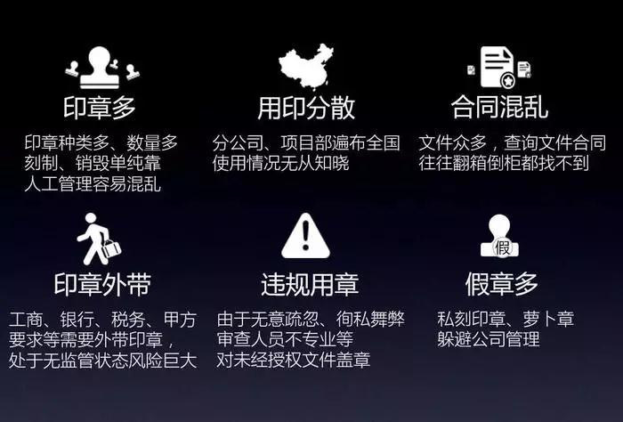 近年來,現代企業規模不斷擴大,在全國(guó)各地設有下屬分子公司,業務往來頻繁。這(zhè)就出現了印章種(zhǒng)類繁多,用章分散,合同管理混亂、外帶頻繁等諸多問題,無形中增大了印章的使用安全風險。在這(zhè)種(zhǒng)狀态下,企業想要實時掌控印章使用動态難上加難!